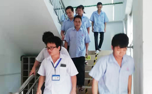 下午四點(diǎn),疏散逃生演練正式開(kāi)始,各部門(mén)的員工按照各車間負(fù)責(zé)人指示從安全通道及時(shí)有序撤離,及時(shí)到達(dá)緊急集合處,籃球場(chǎng)。