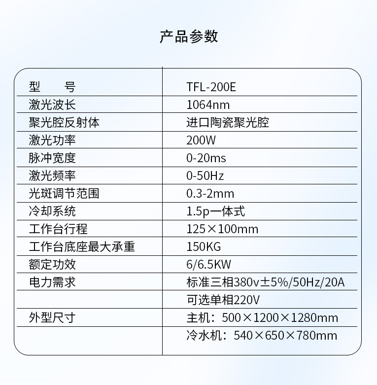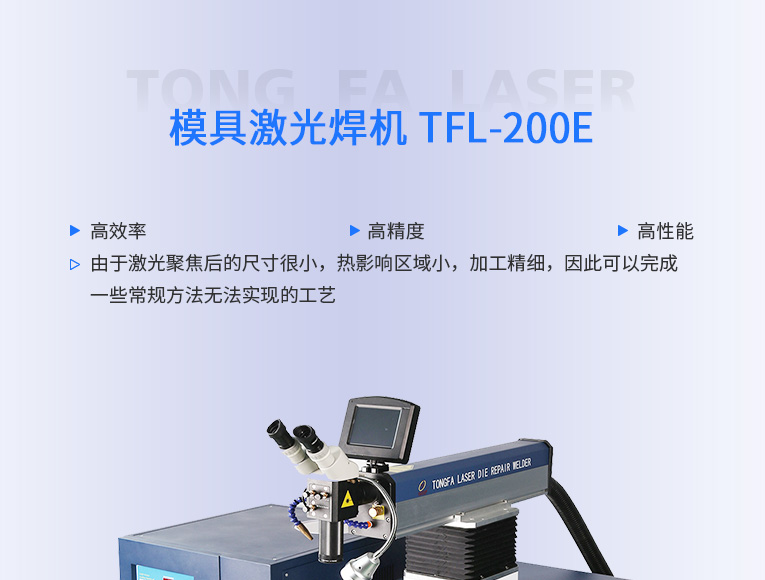 出口型模具激光焊機是通發(fā)激光公司專門為出口國外客戶使用而設計的系列機型TFL-200E,適用于各類精密注塑模具、壓鑄模具等模具激光修補焊接;同時也適合鑄件沙孔激光修補、模具崩缺激光修復、過切加工等的激光修補;各類金屬結(jié)構(gòu)件、金銀首飾的激光焊接加工。