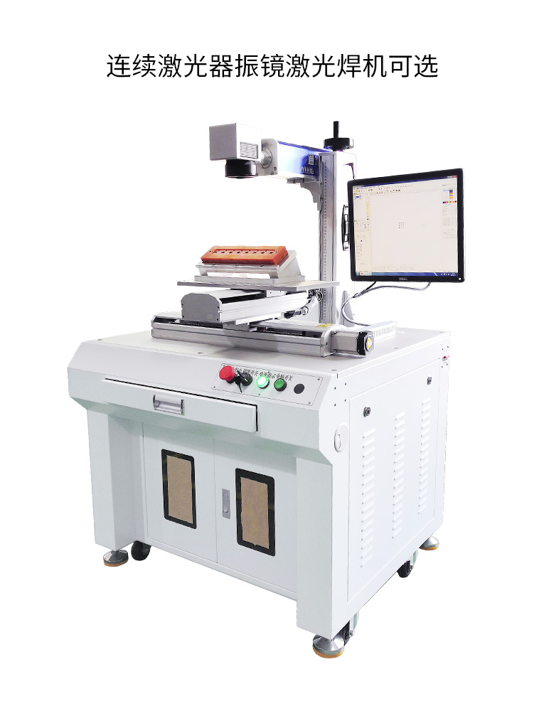 振鏡掃描激光點焊機是引進國外技術,在關鍵部件采用優(yōu)質(zhì)進口部件生產(chǎn)而成的,焊機,使用了掃描鏡組的動態(tài)焊接工藝,并采用掃描鏡片的移動代替工件移動或焊接鏡組移動的方式,使振鏡鏡片在掃描鏡頭內(nèi)將激光光束快速在焊點之間切換,焊點之間的距離越大,工件上的焊點數(shù)量越多,優(yōu)勢越明顯。在單點焊接時由于極大的減少了空程定位時間,生產(chǎn)效率比普通XY工作臺的激光點焊要提高4—10倍。