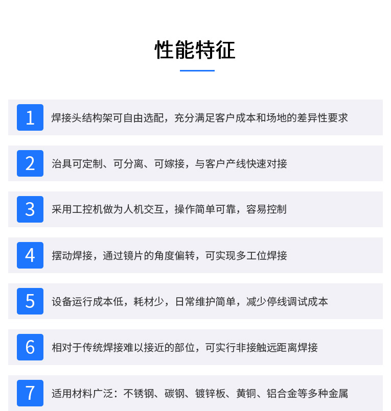 2、強(qiáng)大的PC控制,易于編程、調(diào)試和維護(hù)。可完成自動(dòng)或半自動(dòng)的點(diǎn)焊、對接焊、疊焊、密封焊,針對復(fù)雜的平面直線、圓弧及任意軌跡的焊接。